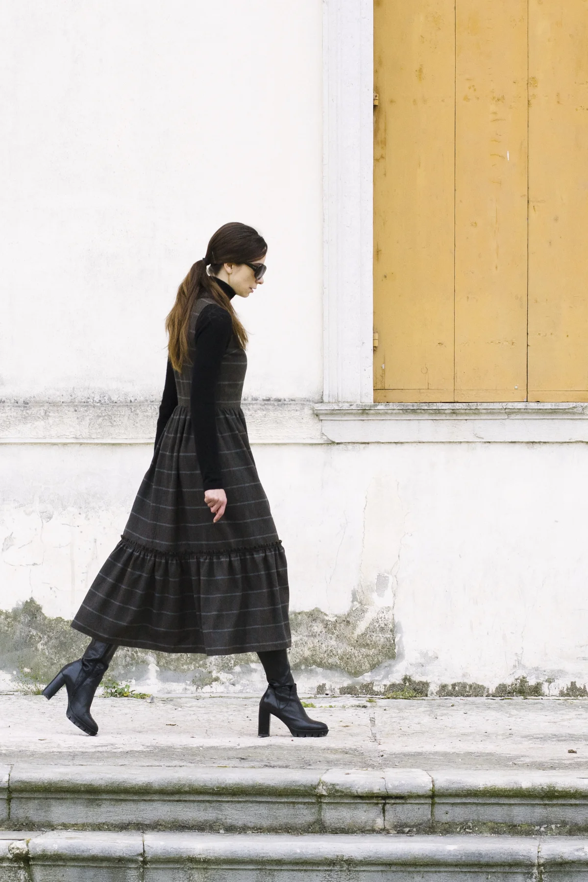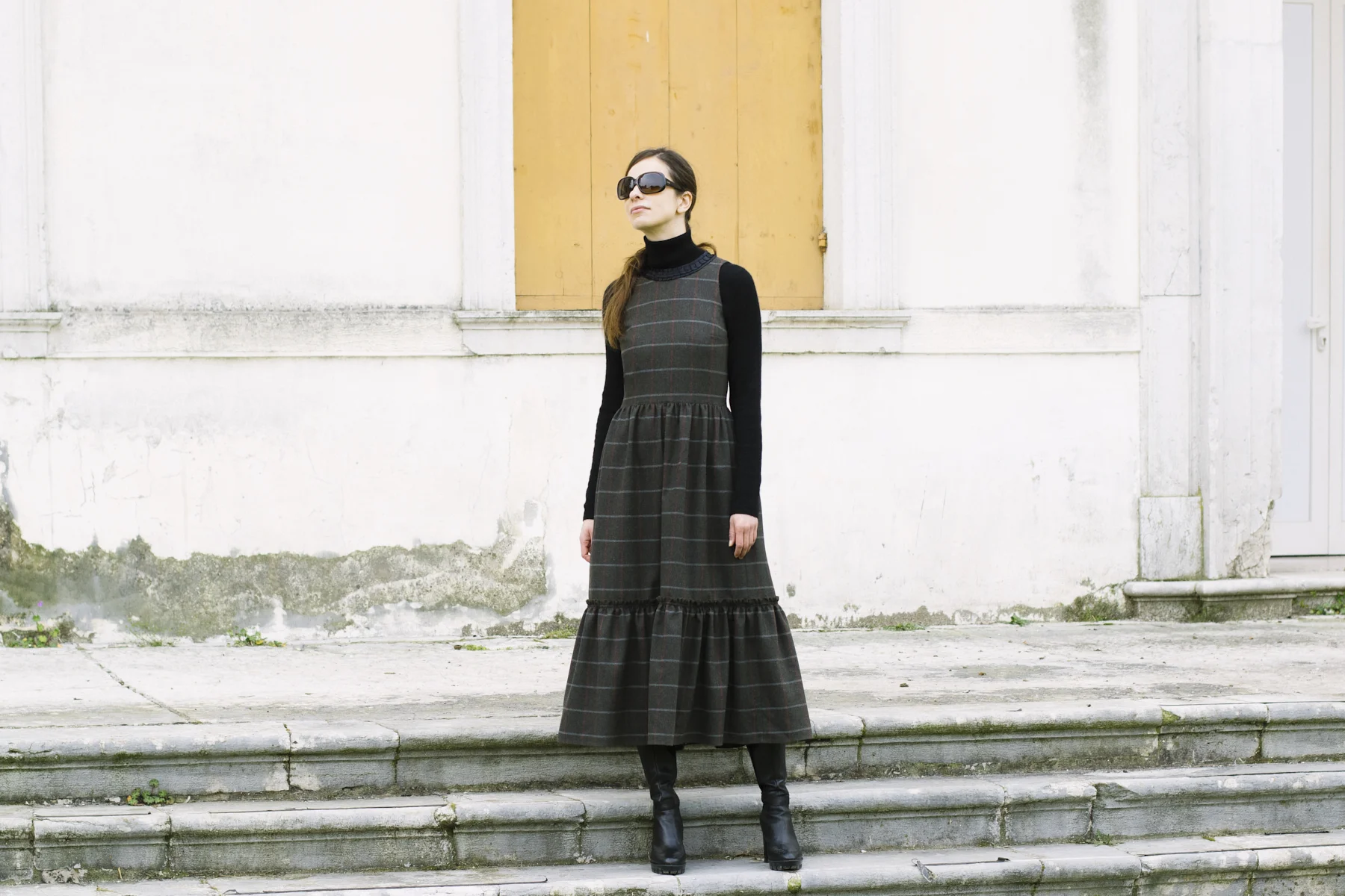 Comunque e per finire: mi diverte molto vedere l’immagine di un vestito e provare a ricrearne la linea. Di questo vestito in particolare, adoro la mescolanza tra lo stile anni ’70 e l’aria “fin de siècle” (che ho accentuato parecchio con il plaid; quasi al limite del steampunk). Devo dire anche che mi piace tantissimo indossarlo; è uno di quei vestiti che mi fa sentire bene :) ::::