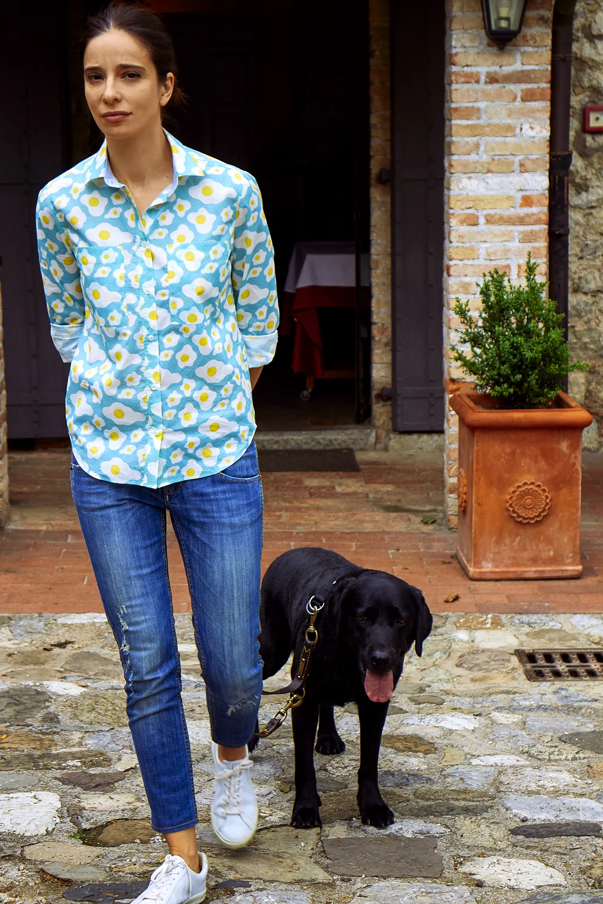 ::::Sunday is that blessed day when I get to sleep in so around noon we went for brunch at a lovely place called Osteria San Michele in Fagagna. Now you're thinking “she ordered eggs and bacon”. The breakfast theme, right? Nope! Plenty of eggs on my shirt already and when you are ten minutes away from San Daniele you don't eat bacon... you eat prosciutto, Prosciutto di San Daniele …. and lots of others delicious local foods that I didn't photograph because I’m not a foodie. I did take one million pictures or so of my new favorite shirt though ;)::Visto che la domenica è quel giorno benedetto nel quale posso dormire fin quando mi piace e pare, verso le undici passate siamo andati a prendere l’aperitivo (brunch suona snob nell’entroterra friulano) a Fagagna in un posto incantevole chiamato Osteria San Michele. Ottimo crudo, ottima birra artigianale alla spina. Abbiamo fatto un milione di foto con la gente e il personale che ci guardava con le sopracciglia alzate …beh, sempre qui, nel entroterra friulano, “blogger” è una mezza parolaccia. 😂::::